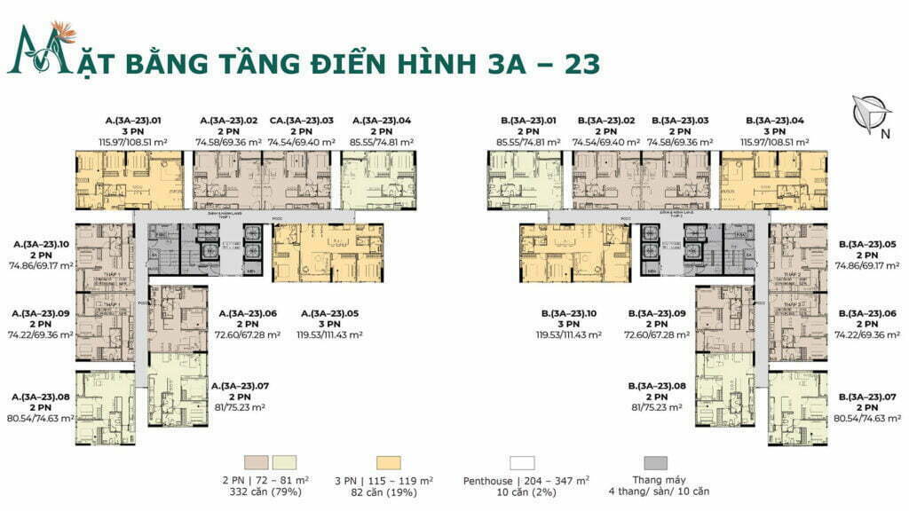 Căn hộ 2PN 2WC có diện tích từ 72 – 81 m2 . Giá bán dự kiến từ 4 tỷ –  4 tỷ 5 .