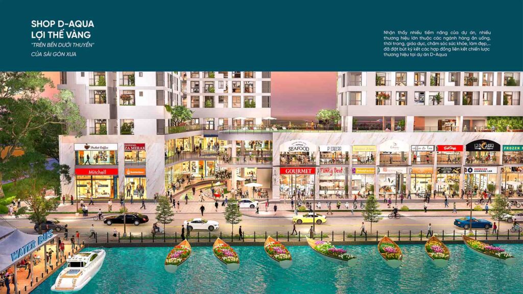 Tháng 12/2025 , chủ đầu tư TTC chính thức công bố ra thị trường sản phẩm shophouse tại khối đế của khu căn hộ D-AQUA . Với giá bán dự kiến từ 90 – 150 triệu / mét vuông tùy vào vị trí căn shophouse .